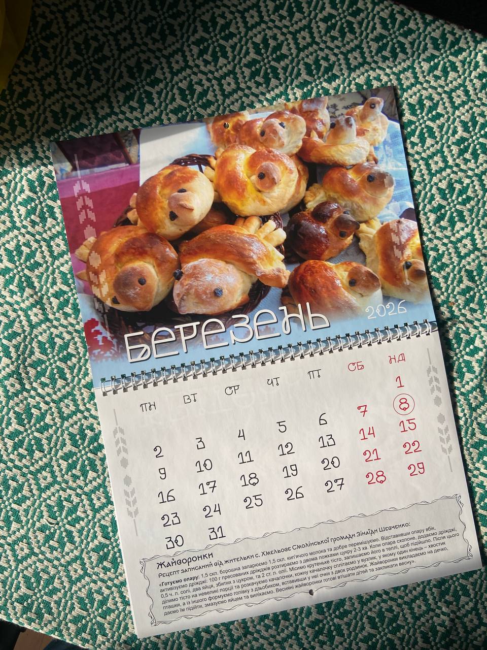 Кожен місяць у календарі — це один традиційний рецепт, пов’язаний із сезоном і звичним ритмом життя.