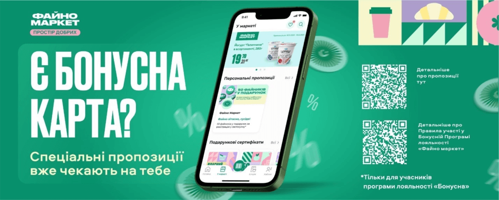 Кожна покупка – це шанс отримати ще більше унікальних пропозицій! Завантажуйте мобільний застосунок та отримайте ще більше вигоди у Файно Маркет!