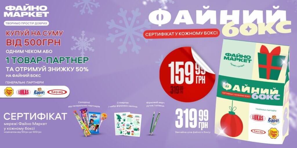 - Поспішайте придбати "Файний бокс" та отримайте приємний сюрприз сертифікат на покупки номіналом від 50 до 500 гривень!